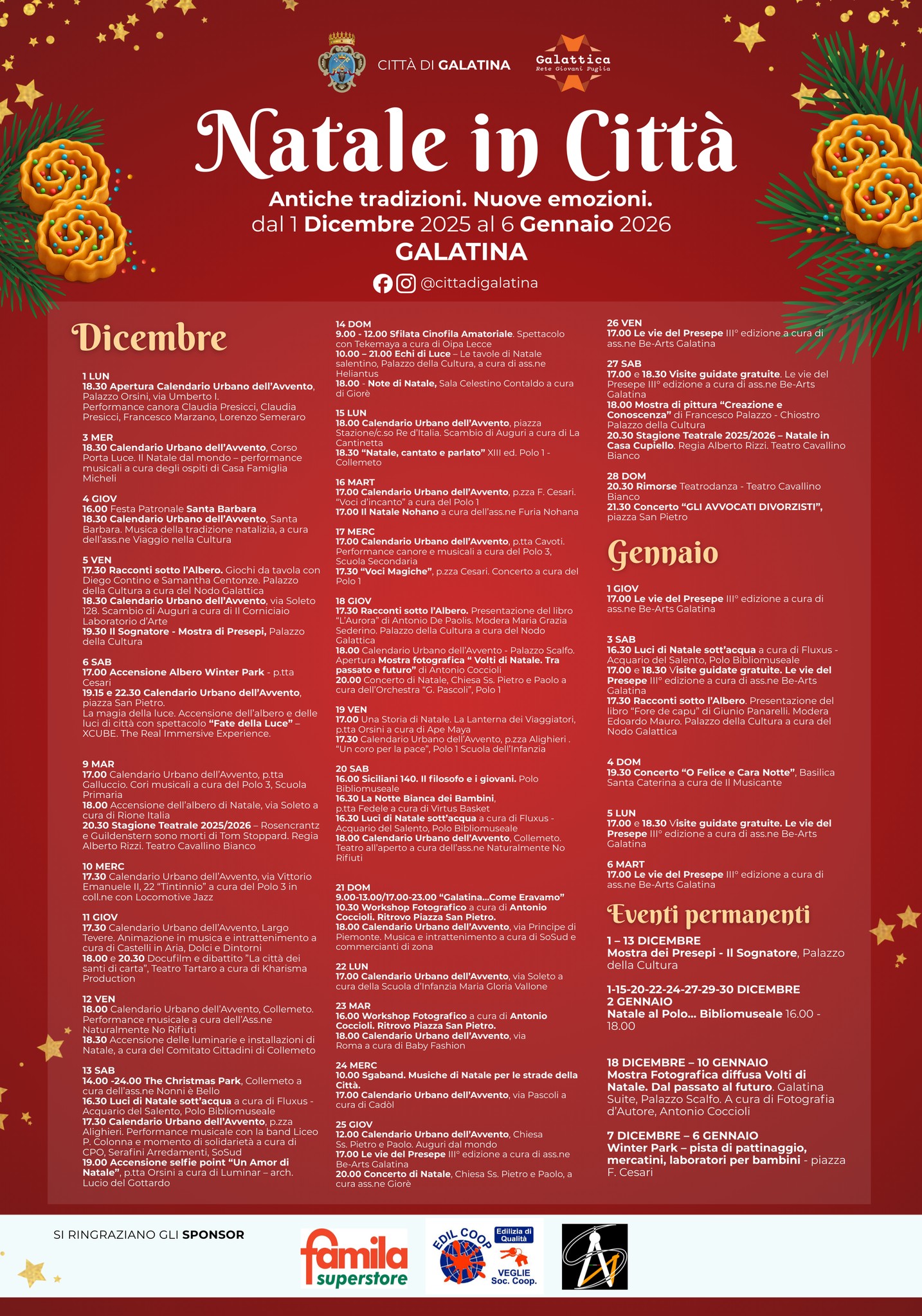 Seguite i canali social di @cittadigalatina per tutti i dettagli ed eventuali aggiornamenti.
